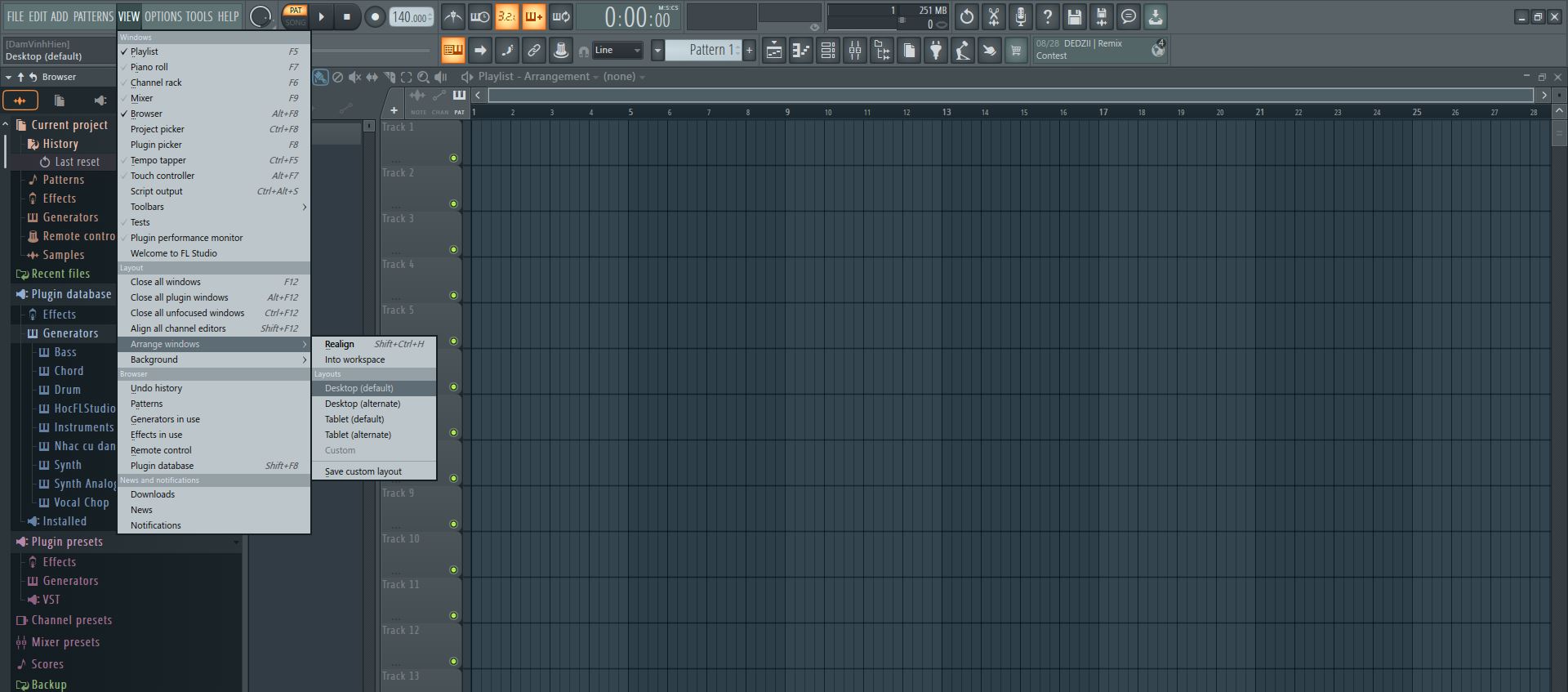 Sau một thời gian sử dụng, có thể FL Studio của bạn sẽ bị thay đổi so với giao diện mặc định ban đầu.