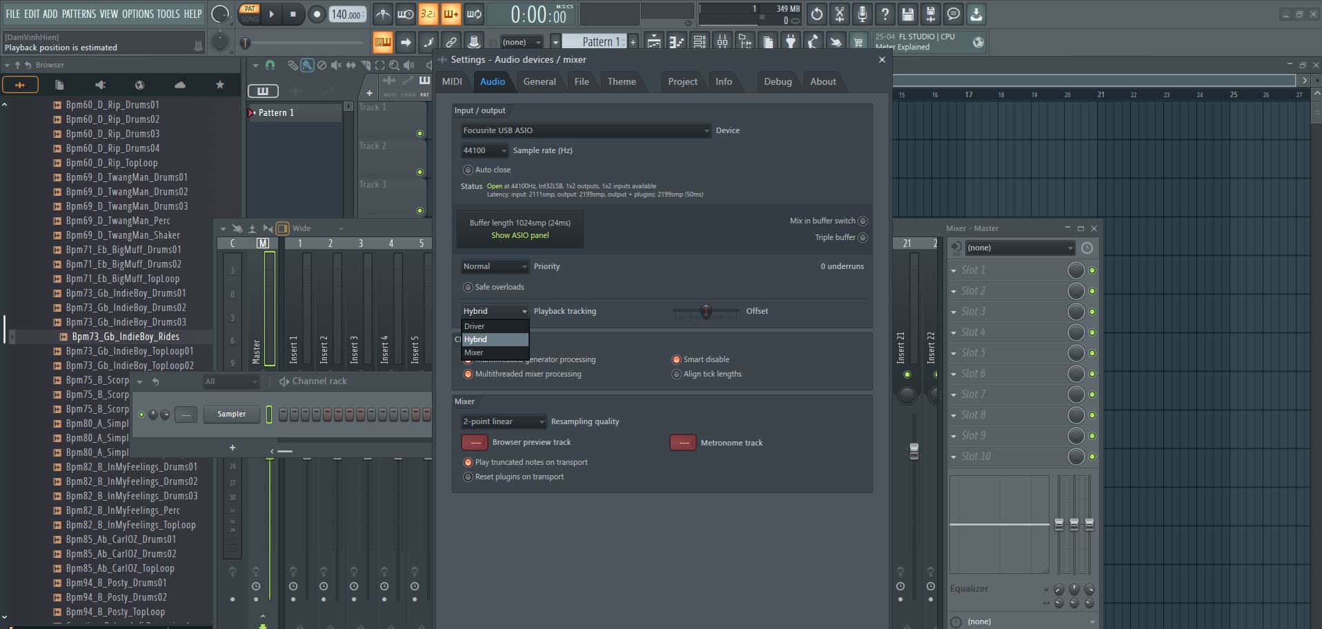 Bạn vào Audio Settings của FL Studio, trong mục Playback Tracking, bạn chọn Mixed hoặc Hybrid thay vì chọn Driver. Lựa chọn Hybrid thông thường sẽ là lựa chọn ổn định nhất.